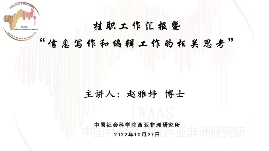 【青年论坛】赵雅婷博士作挂职工作汇报暨“信息写作和编辑工作的相关思考”学术讲座