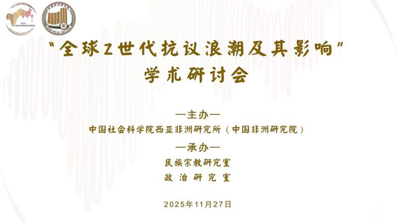 2025年11月27日下午,“全球Z世代抗议浪潮及其影响”学术研讨会在中国社会科学院西亚非洲研究所(中国非洲研究院)举行。西亚非洲研究所所长叶海林出席会议并致辞,田丰副所长作会议总结。研讨会由西亚非洲研究所民族宗教研究室主任李文刚主持。来自中国社会科学院西亚非洲研究所、世界经济与政治研究所、欧洲研究所、美国研究所、拉丁美洲研究所、世界历史研究所、亚太与全球战略研究院的专家学者和中国社会科学院大学博士研究生参加了此次会议。