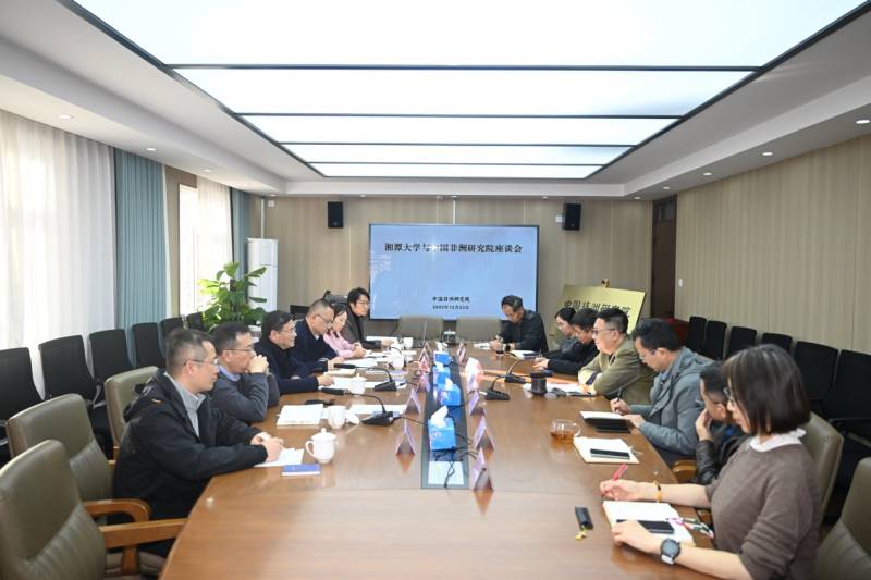 2025年12月23日下午,湘潭大学校长廖永安、副校长刘中望一行6人到访中国社会科学院西亚非洲研究所座谈交流。西亚非洲研究所所长叶海林、《西亚非洲》编辑部主任詹世明、政治研究室朱伟东研究员、办公室主任刘畅、国际合作处处长马骏、科研处副处长马学清和政治研究室副主任沈晓雷等参加座谈。