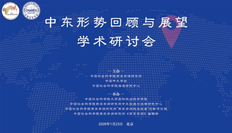 2026123日,中东形势回顾与展望学术研讨会在北京隆重举行。中国前中东问题特使吴思科,中国前驻以色列大使詹永新,中国社会科学院西亚非洲研究所党委书记周工岱,中国社会科学院西亚非洲研究所所长、中国非洲研究院院长叶海林以及来自全国各高校和研究机构的60余位专家出席了会议。中国中东学会会长、中国社会科学院海湾研究中心主任王林聪主持开幕式。